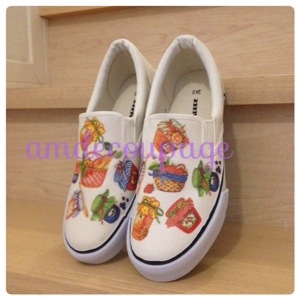 この日は上履きデコレッスンでした。 大人の靴と子どもの靴。